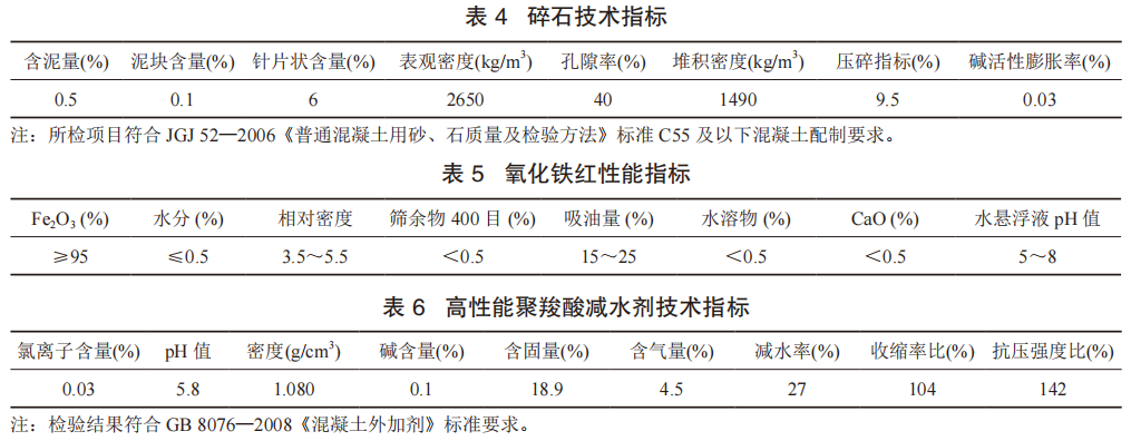 (5)高性能聚羧酸减水剂:采用廊坊恺建高性能聚羧酸减水剂,其性能见表6。